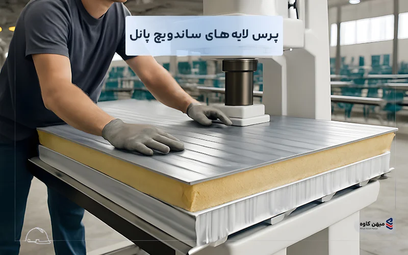 پرس حرارتی، لایههای ساندویچ پانل را با فشار و دما مناسب به هم متصل میکند تا محصول نهایی از استحکام و مقاومت بالایی برخوردار باشد. این مرحله برای ایجاد اتصال محکم بین لایهها بسیار اهمیت دارد.